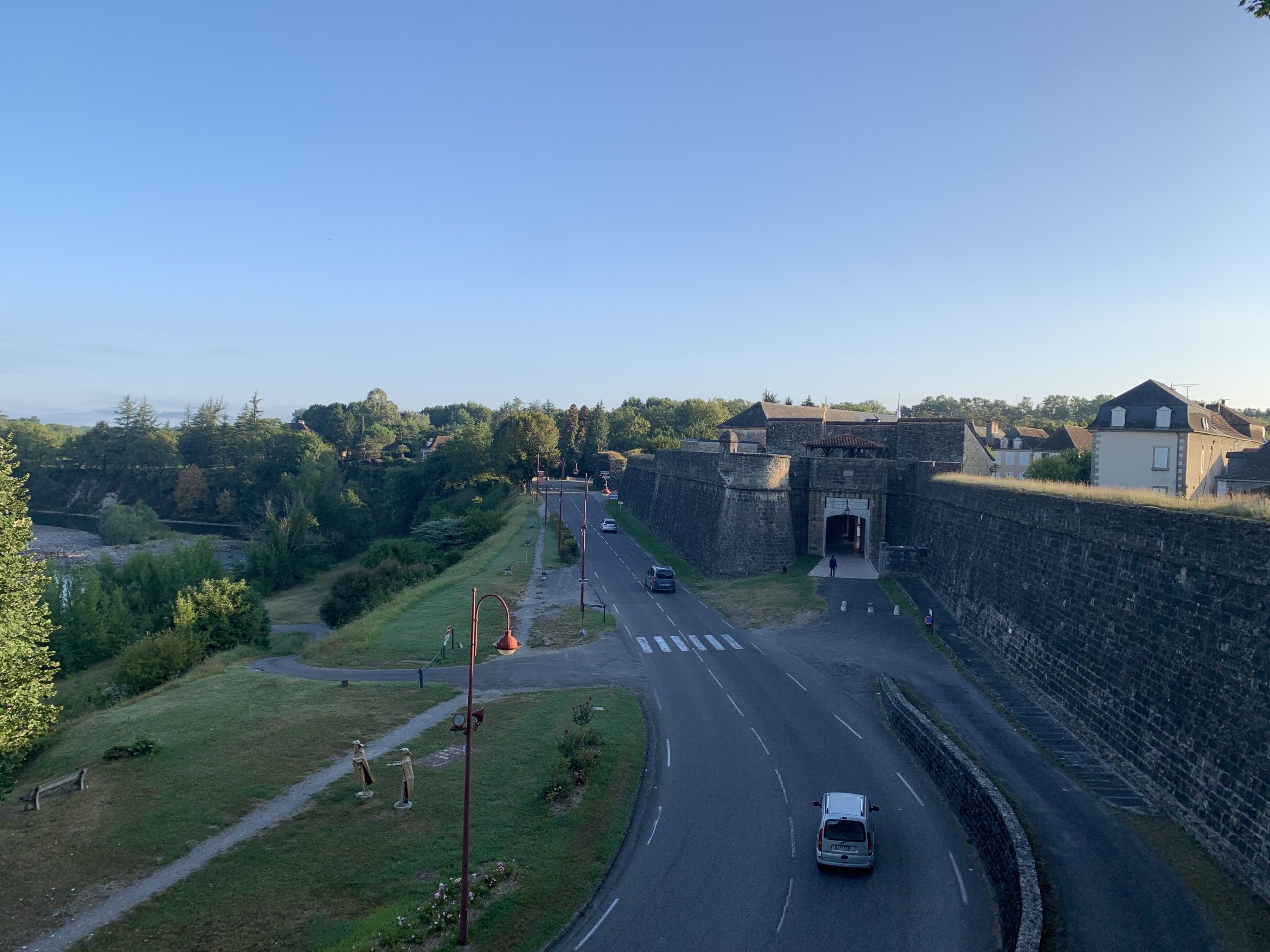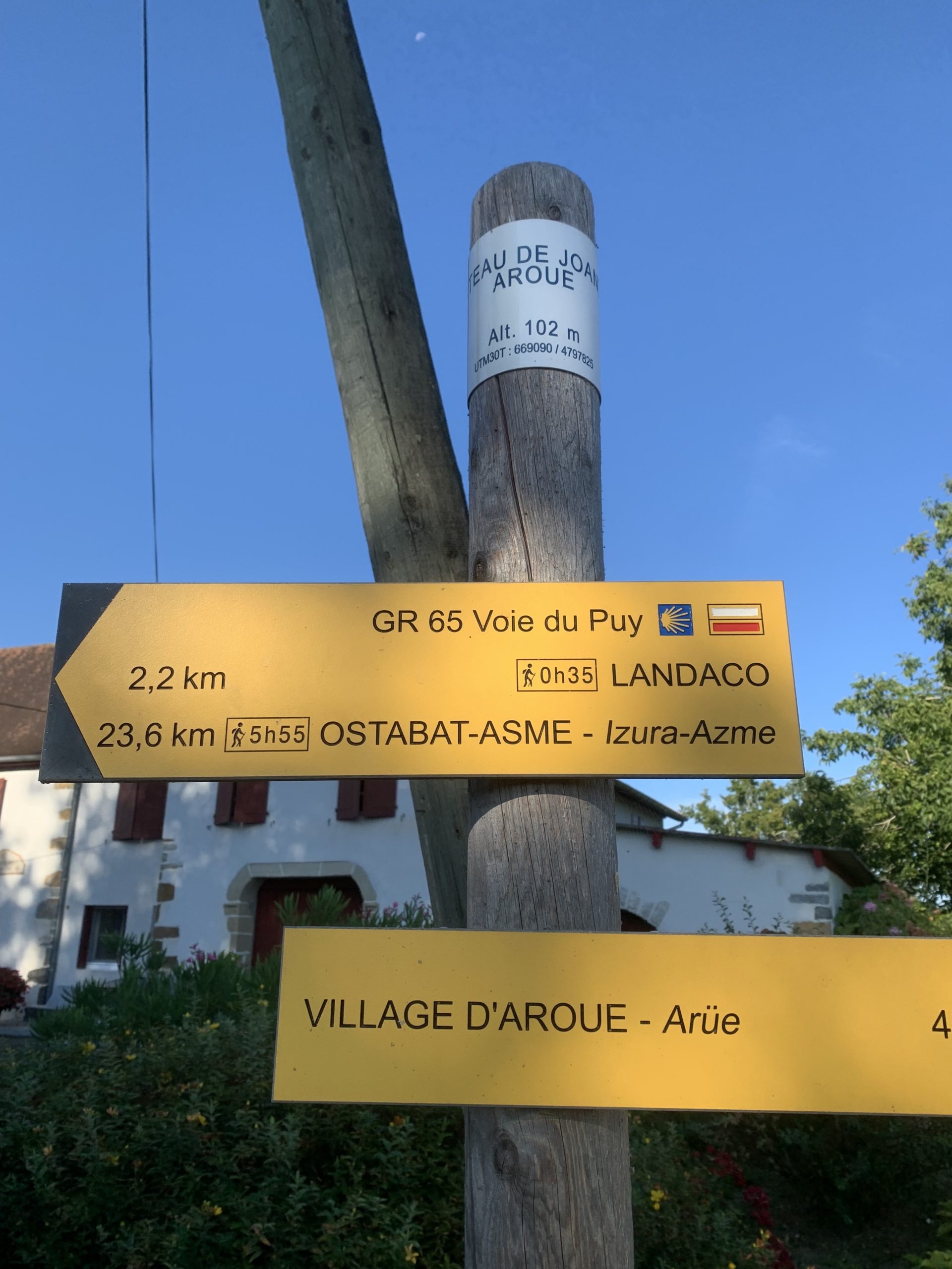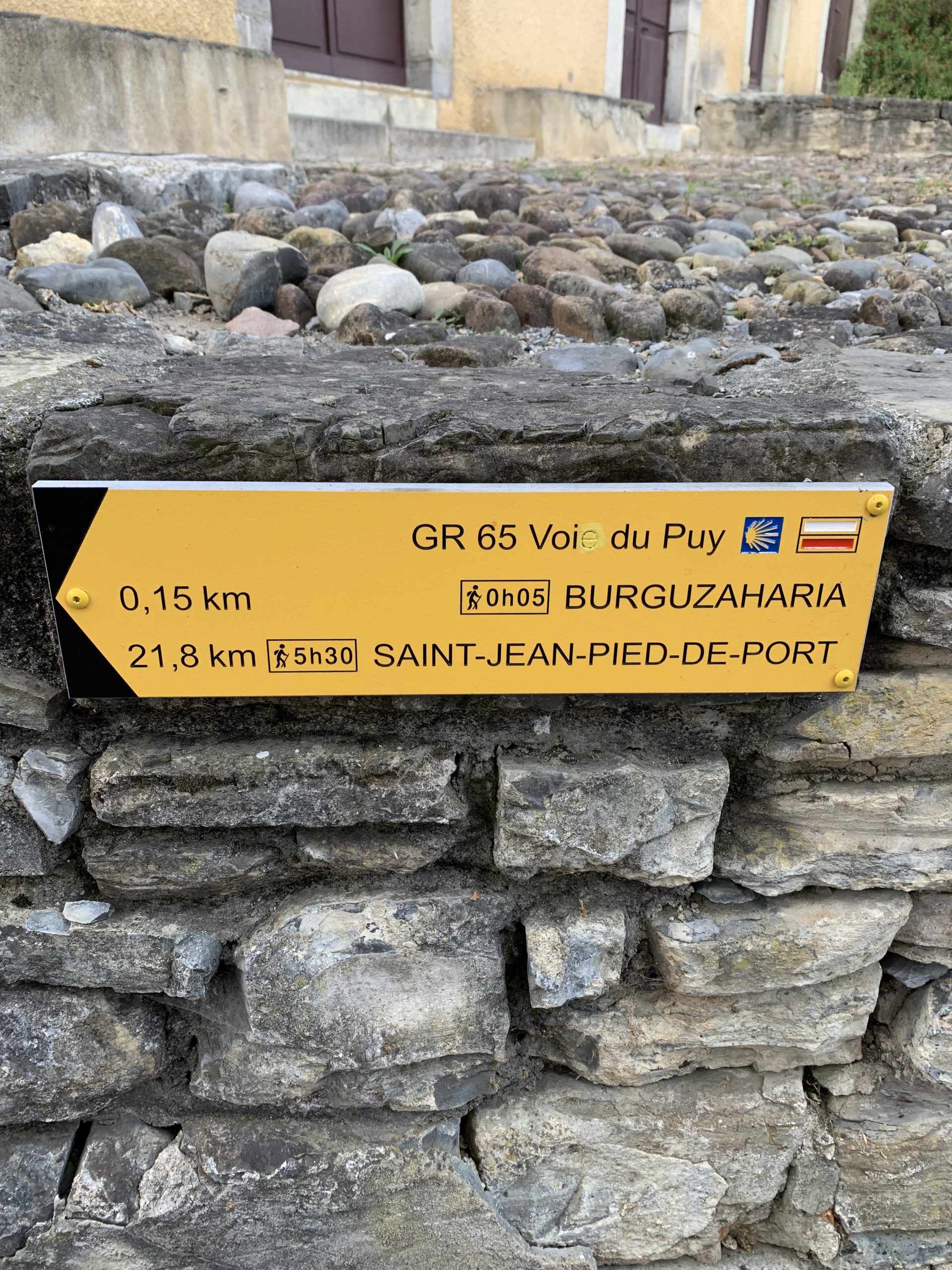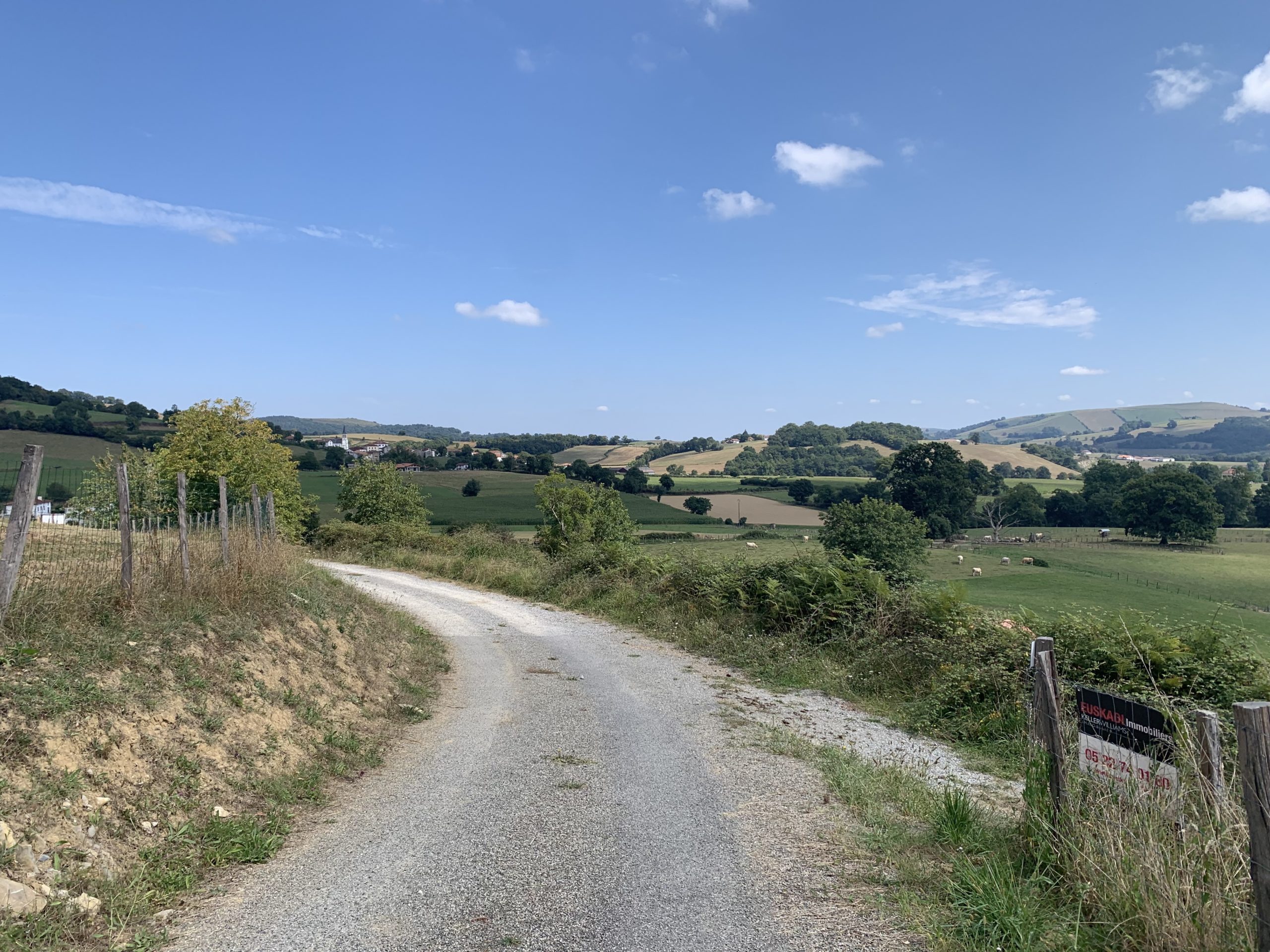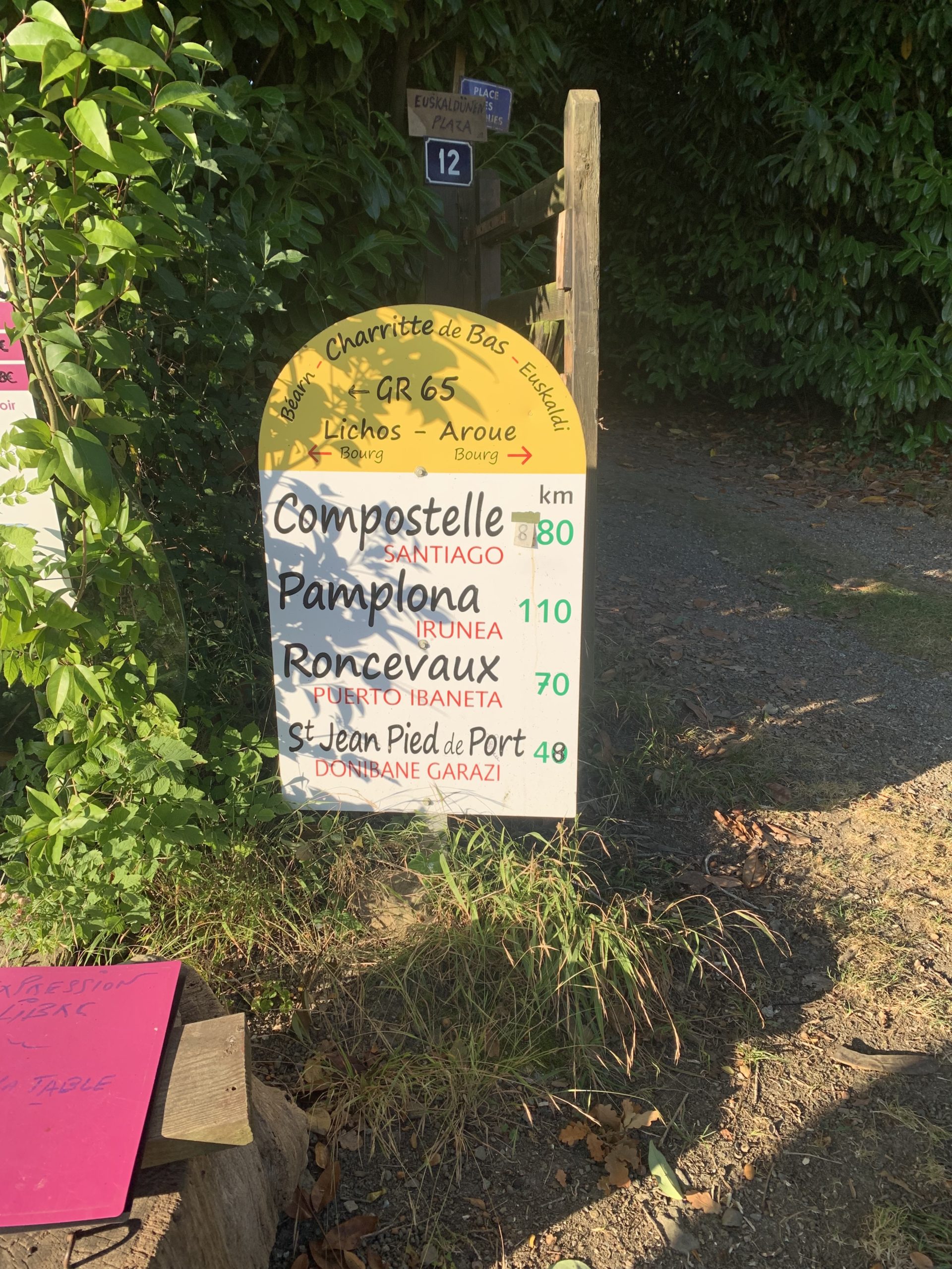 Nous voilà arrivées à la dernière étape de notre périple. Nous avons 19km à parcourir. Après un petit déjeuner copieux dans notre maison d’hôtes au milieu de nulle part. Notre hôte très sympathique nous amène au départ du Gr. Il fait un peu frais mais le ciel est magnifique. La chaîne des Pyrénées se détache au fond. Notre chemin longe une grande route très passante qui mène à St Jean. Mais nous avons les indications pour suivre le Gr. Aujourd’hui nous ne sommes pas toutes seules. Nous suivons ou dépassons d’autres pèlerins . Nous en avons déjà rencontré certains, mais d’autres viennent se joindre au groupe. Le paysage est sublime. Entre les cloches des vaches , les bêlements des moutons nous sommes en pleine nature. Nous voyons aussi deux ânes et des chevaux. Après un arrêt casse croûte, nous nous rapprochons de St Jean. Il y a d’abord St Jean le vieux . Notre but est maintenant à 4km. Les maisons basques toutes blanches aux volets rouges foncés et colombages se font de plus en nombreuses. Nous entrons dans St Jean par la porte St Jacques. Nous voici donc au bout de notre marche. Nous avons parcouru 145km en 8 jours. Nous sommes fières de notre exploit. Demain repos et visite de la ville avant de rentrer sur Paris Jeudi avec des images de paysages plein la tête.