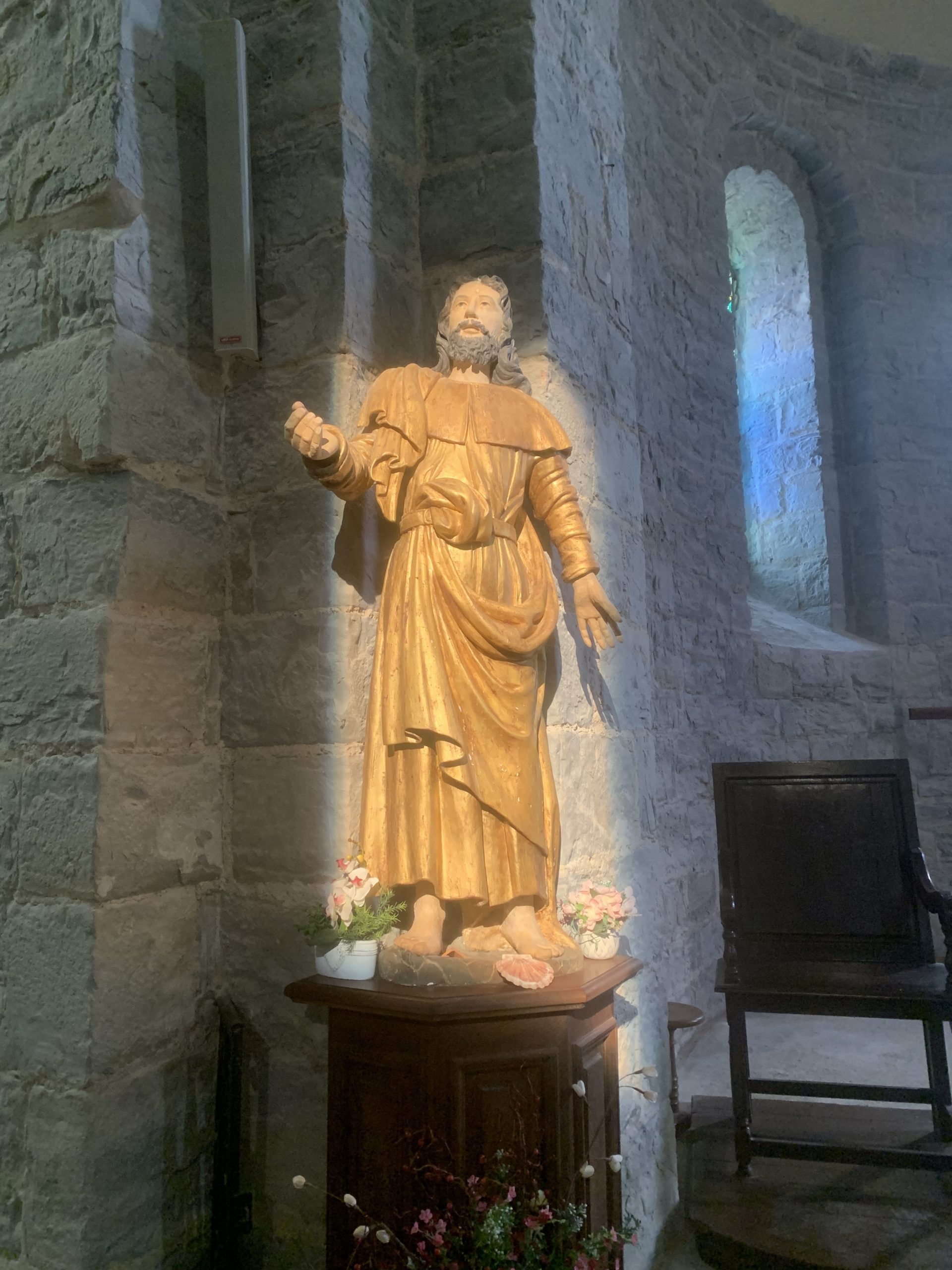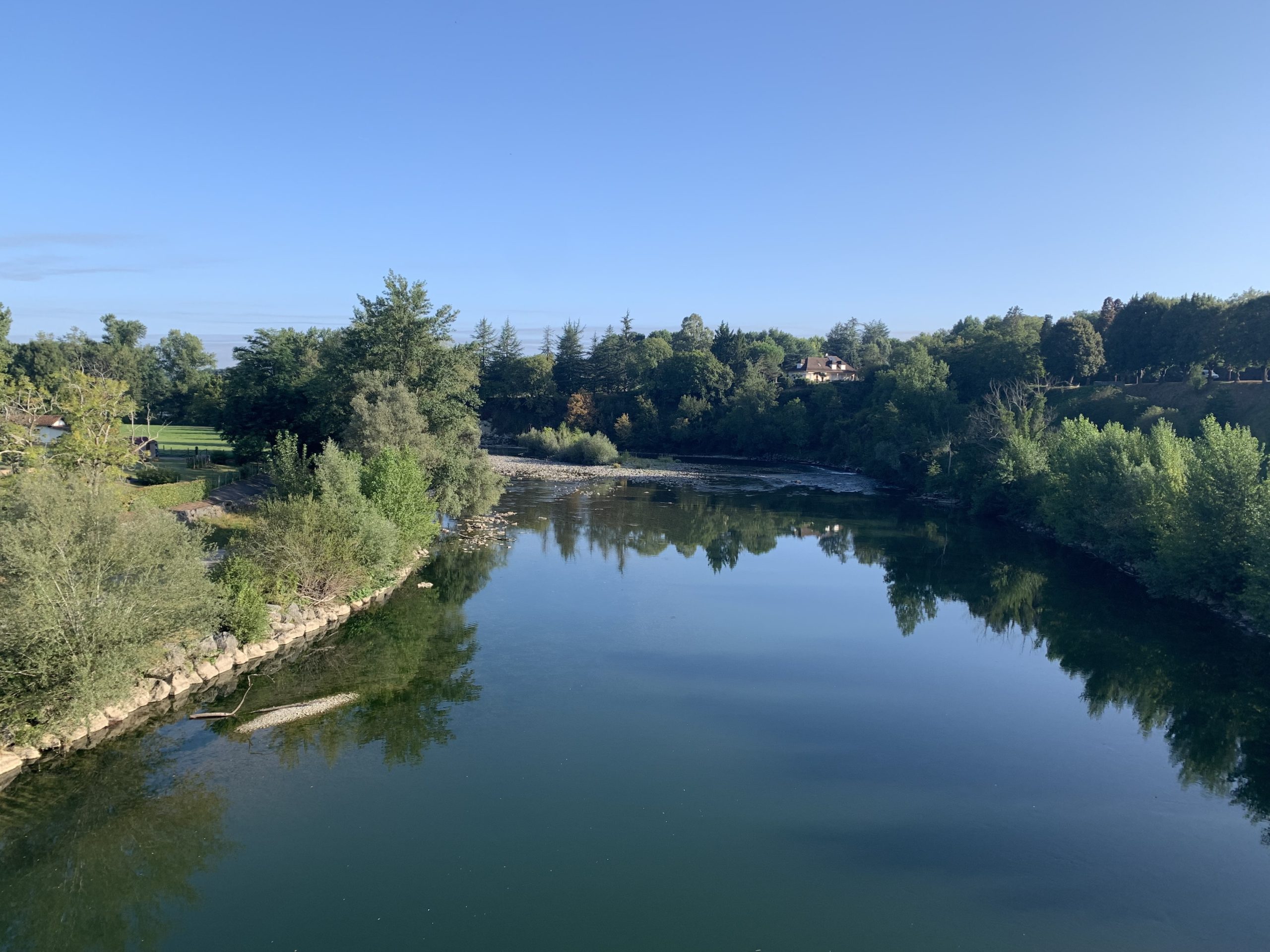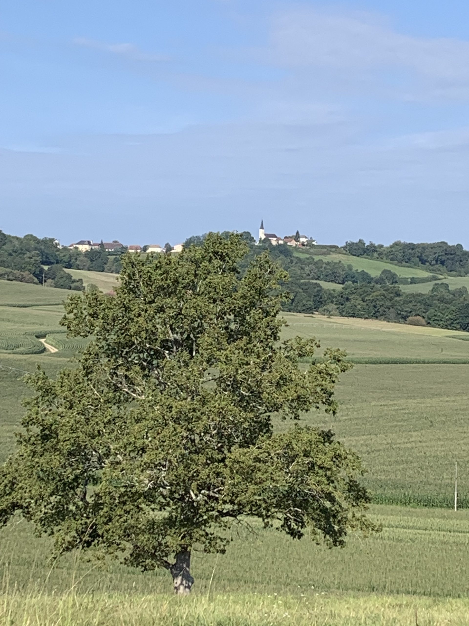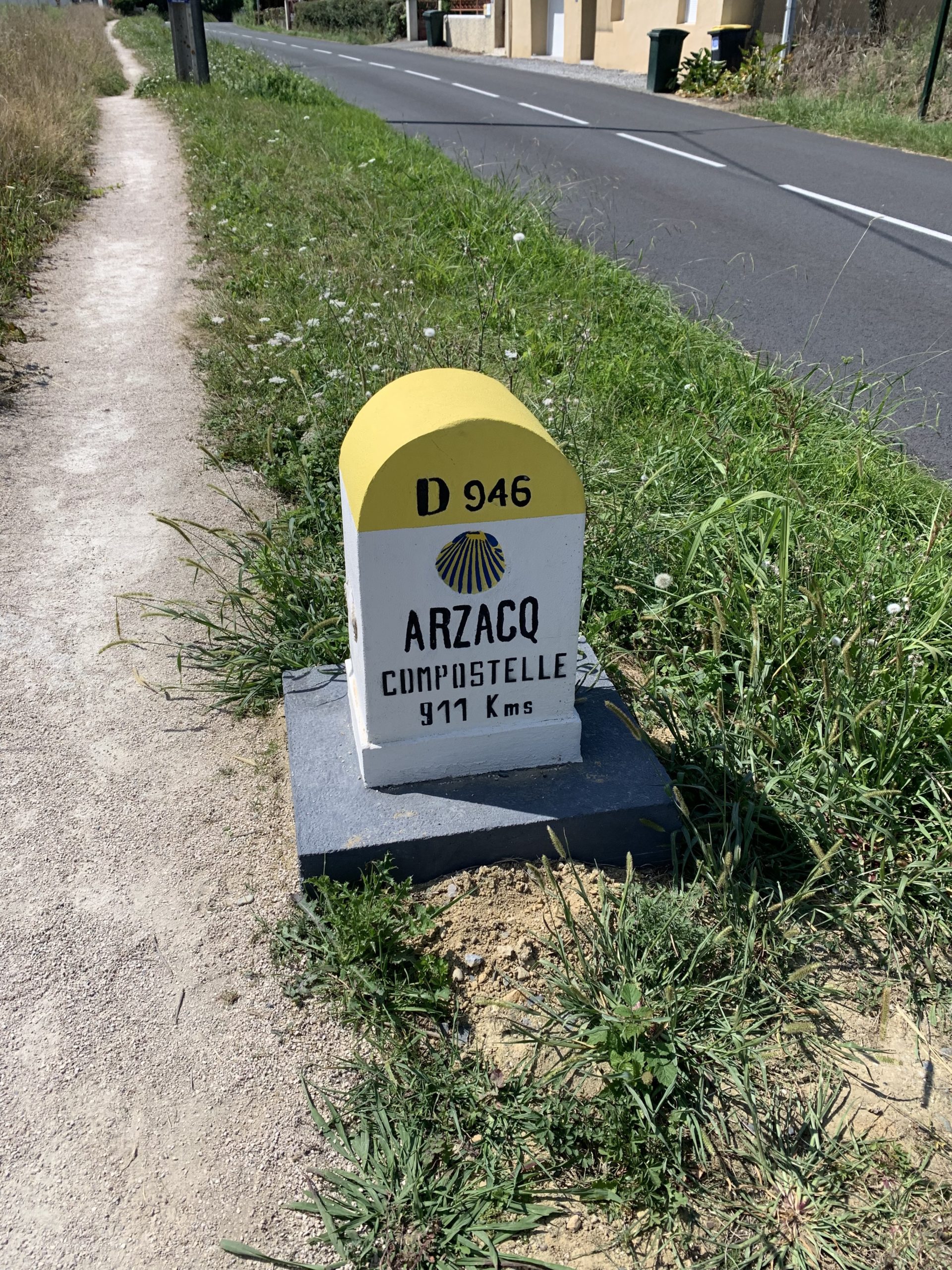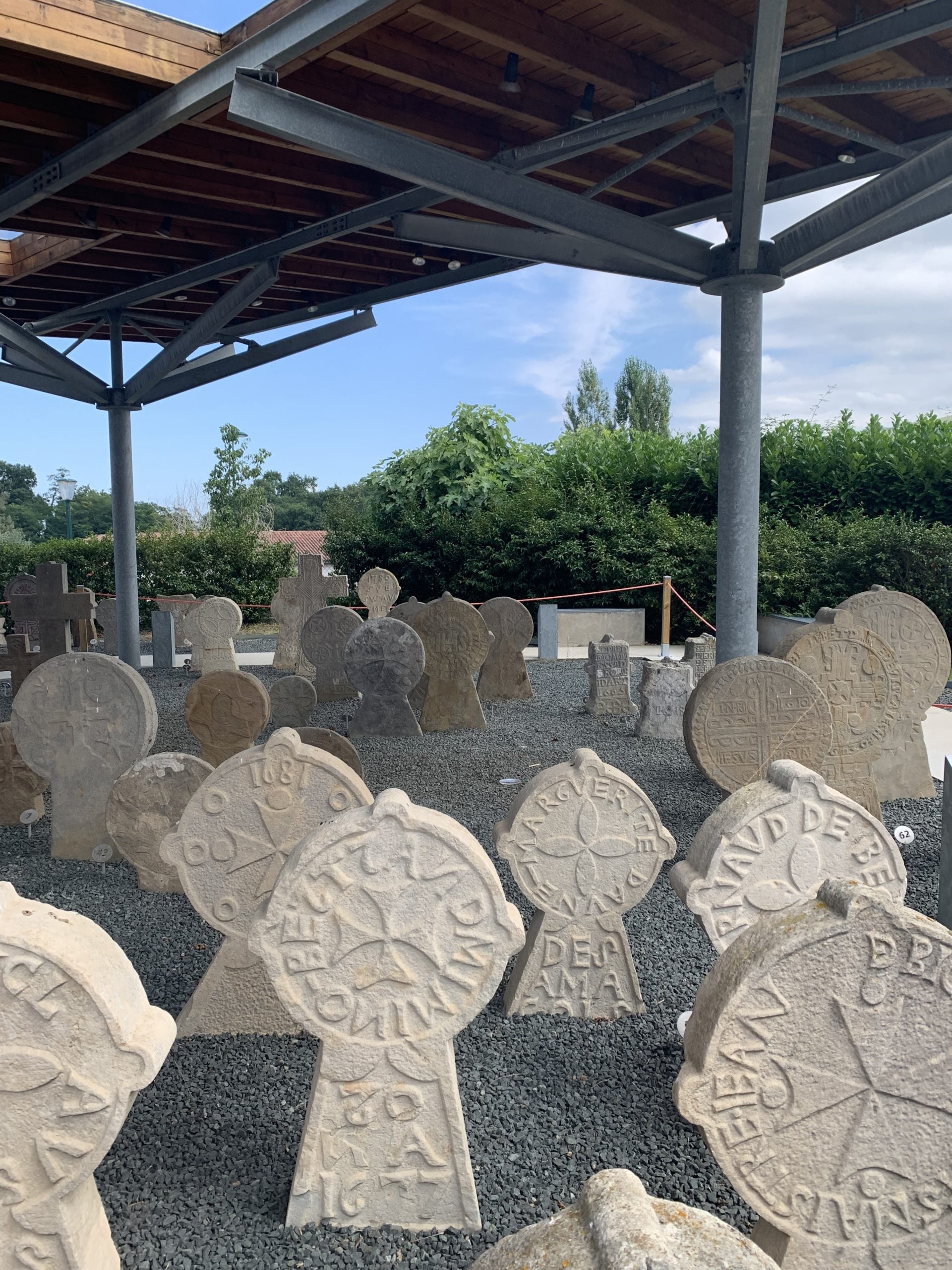 Nous voilà arrivées à la dernière étape de notre périple. Nous avons 19km à parcourir. Après un petit déjeuner copieux dans notre maison d’hôtes au milieu de nulle part. Notre hôte très sympathique nous amène au départ du Gr. Il fait un peu frais mais le ciel est magnifique. La chaîne des Pyrénées se détache au fond. Notre chemin longe une grande route très passante qui mène à St Jean. Mais nous avons les indications pour suivre le Gr. Aujourd’hui nous ne sommes pas toutes seules. Nous suivons ou dépassons d’autres pèlerins . Nous en avons déjà rencontré certains, mais d’autres viennent se joindre au groupe. Le paysage est sublime. Entre les cloches des vaches , les bêlements des moutons nous sommes en pleine nature. Nous voyons aussi deux ânes et des chevaux. Après un arrêt casse croûte, nous nous rapprochons de St Jean. Il y a d’abord St Jean le vieux . Notre but est maintenant à 4km. Les maisons basques toutes blanches aux volets rouges foncés et colombages se font de plus en nombreuses. Nous entrons dans St Jean par la porte St Jacques. Nous voici donc au bout de notre marche. Nous avons parcouru 145km en 8 jours. Nous sommes fières de notre exploit. Demain repos et visite de la ville avant de rentrer sur Paris Jeudi avec des images de paysages plein la tête.