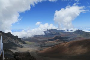 Et nous voilà reparties pour la dernière étape. 11 miles qui nous mènerons presque au sommet du Haleakala dont nous pourrons admirer l’immense cratère. Il fait 34km de diamètre et 900m de profondeur