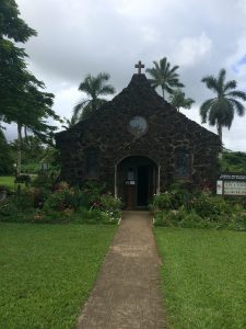 Comme ce n’est pas très loin, nous décidons de faire un détour pour visiter quelques charmantes villes typiquement américaines : Pa’ia tout d’abord. Chemin faisant nous passons devant une petite église consacrée à St Damien. Puis nous atteignons la ville De Makawao. Les américains ne sont pas très forts ni en indications ni en numéro de route. Donc après un petit détour nous arrivons à retrouver la route du volcan.