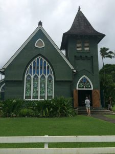 Nous nous arrêtons ensuite à l’Hanalei lookout d’où l’on domine toute la vallée. Hanalei est la petite ville typique américaine avec son église, son shopping center et ses maisons traditionnelles.