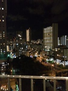 Une foule énorme se presse devant les stands de restauration, d’artisanat ou de balades. Nous sommes tout de suite dans l’ambiance. Nous avançons vers Waikiki mais de nuit ce n’est pas évident. Nous regagnons donc notre hôtel qui se situe non loin de là.