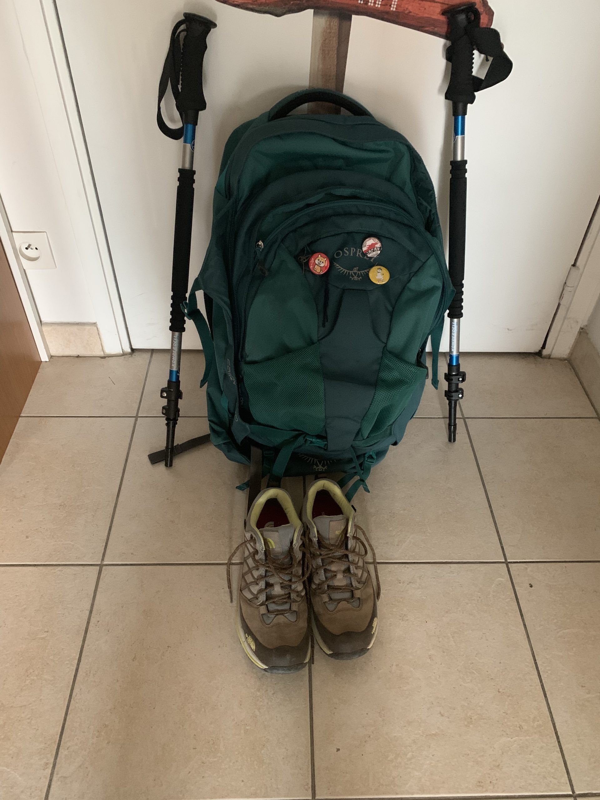 Petit à petit, les préparatifs commencent. Pour ma première randonnée de 8 jours, il faut penser à tout. Les sacs à dos, bâton de marche, chaussures de randonnée , chaussettes, trousse de secours, vêtements (pas trop), la liste est longue. Mais bon tout se passe bien. Le train est réservé et les hôtels aussi. Départ pour Pau le 23 Aout au matin. De là le bus qui nous conduira a notre premier hébergement à Barcelone du Gers.